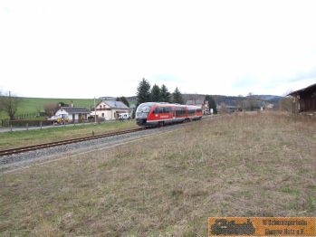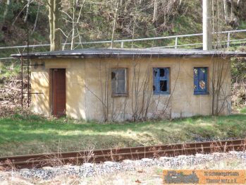 Der Hp Schönfeld ist mit der Umspurung in den 1990 Jahren abgerissen worden. Durch den Wildanflug von Bäumen ist der Bereich schlecht festzuhalten. |