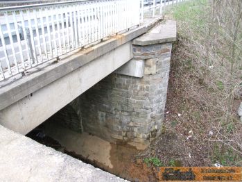 Die Bingebrücke ist nach wie vor noch vorhanden. Teilweise sind die Einschnitte der Bahnstrecke verfüllt worden. Die Bordsteine begrenzen aber nach wie vor die Brücke in ihren Ausmaßen. |