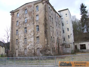 Die alte Spinnerei Höffer ist schon stark im Verfall. Vom Werksanschluss ist ebenfalls nicht mehr viel zu erkennen. |