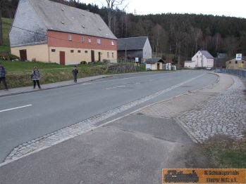 Auf Höhe der Ortspyramide des Erzgebirgszweigvereins befand sich die Geyerbachbrücke. |