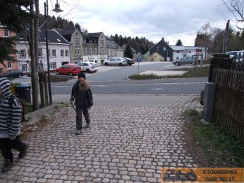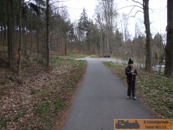 Sie laufen von den Garagen aus an der Kita (Bahnhofsgelände) vorbei zur Max-Wenzel-Straße. Dann um die Ecke, die Ziegelstraße vor Richtung Thum. Irgendwann laufen sie auch über den Damm „Am Waldschlösschen“. |