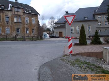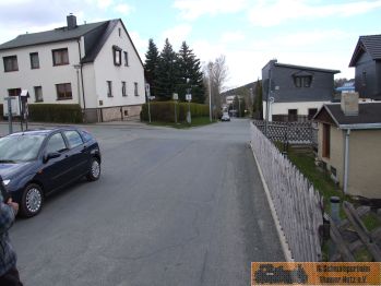 Die Strecke Richtung Thum ist ab hier nicht begehbar. Also Bergauf nach links der Ehrenfriedersdorfer Straße folgen. |