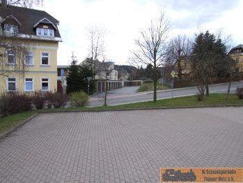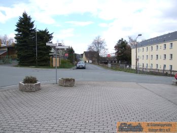 Der Bereich rund um den Bahnübergang hat sein Aussehen, seit der Stilllegung der Bahn, mehrfach verändert. Richtung Bahnhof ist erst ein Firmenlagerplatz und dahinter ein kleines Gewerbegebiet. Das BW ist nun dem DRK Altenhilfezentrum Thum/Erzgebirge gGmbH gewichen. |