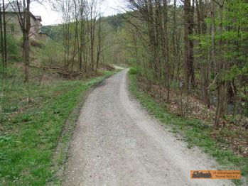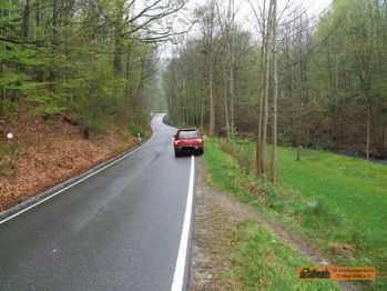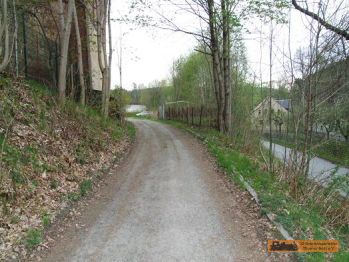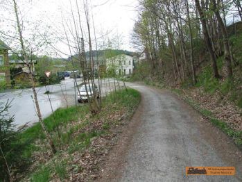 Von der Brücke geht es wiederum zur Straße "An der Schlösselmühle". Der Rad- und Wanderweg folgt nun wieder der Straße Bergauf. |