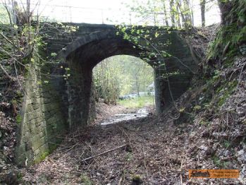 Die Brückenwiderlager rechts und links der Wilisch zeigen den Standort der Brücke. Interessant sind hier die alten Kalköfen am Ende des Haltepunktes. |