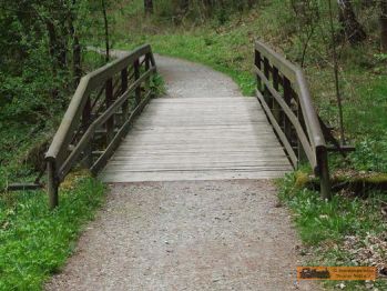 Werksgrabenbrücke zu einem Teich |