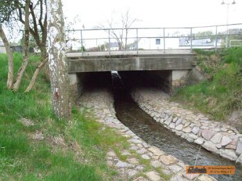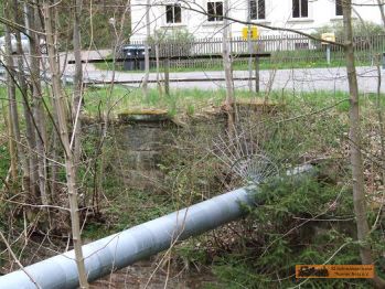 Ab Gelenau liegt seit einigen Jahren der Abwasserkanal neben oder auf der alten Bahnstrecke. Dadurch sind viele Zeitzeugen, samt Werksgrabenbrücke verschwunden. |