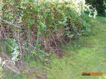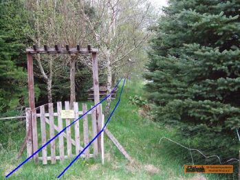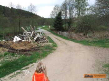 An der Kirche biegt die Strecke hinter die Grundstücke ab. Plötzlich ist man auf privatem Grund und irgend wie auf einer Deponie. Wenn man über das Feld/Weide (!Weidezaun!) läuft. Wir empfehlen der Straße zu folgen. |