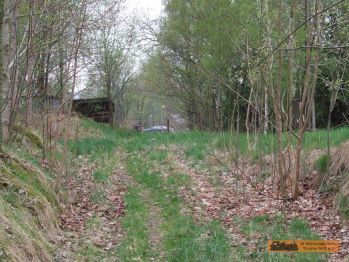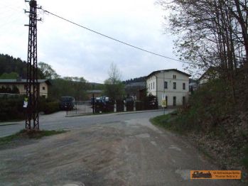 Von der Straße aus sieht man den Prellbock des Ausziehgleises. Vor unserem Vereinsgebäude, dem Bahnhof Oberherold befindet sich eine Treppe, welche auf das Bahnhofsgelände führt. Die Bahnhofszufahrt befindet sich etwas weiter oben. Das Bahnhofsgebäude samt Güterboden wird von uns genutzt und erhalten. Der Freiabort ist auch im originalen Zustand versetzt. Der fast original erhaltene I K Lokschuppen ist nicht in unserem Besitz. |