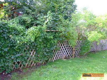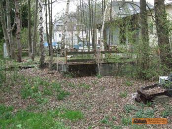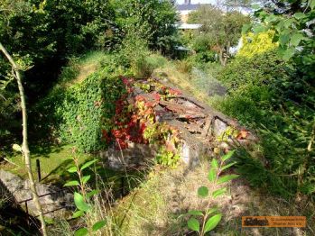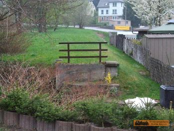 Die Wilischbrücke befand sich hinter der Garage. Was hier eine Sitzecke aussieht, war das 2. Brückenwiderlager. Um 1900 war hier auch der Bahnsteig. |