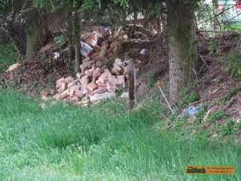 Der Haltepunkt Grießbach ist jetzt nur noch eine Bushalte, Welche die Bahnlinie ersetzt hat. Ein Fundament eines Gebäudes ist hier der einzige Zeitzeuge auf dem Gelände. |