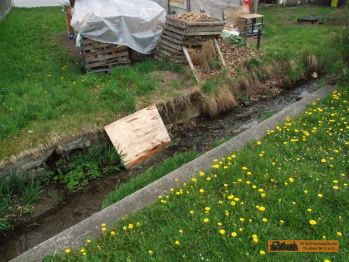 Auf dem Weg weiter nach Grießbach gibt es 2 Steinerne Wasserdurchlässe. Einer mit "Absturzfunktion"! Die Sitzgruppe ist auch nicht mehr ganz neu. |