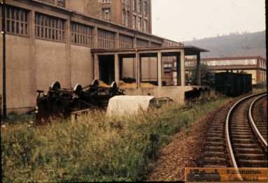 Vorweg war hier die DDR-BHG untergebracht. Von Gleisen ist hier nichts mehr zu sehen. Jetzt ist es Privatgrund und sehr viel umgebaut worden. |